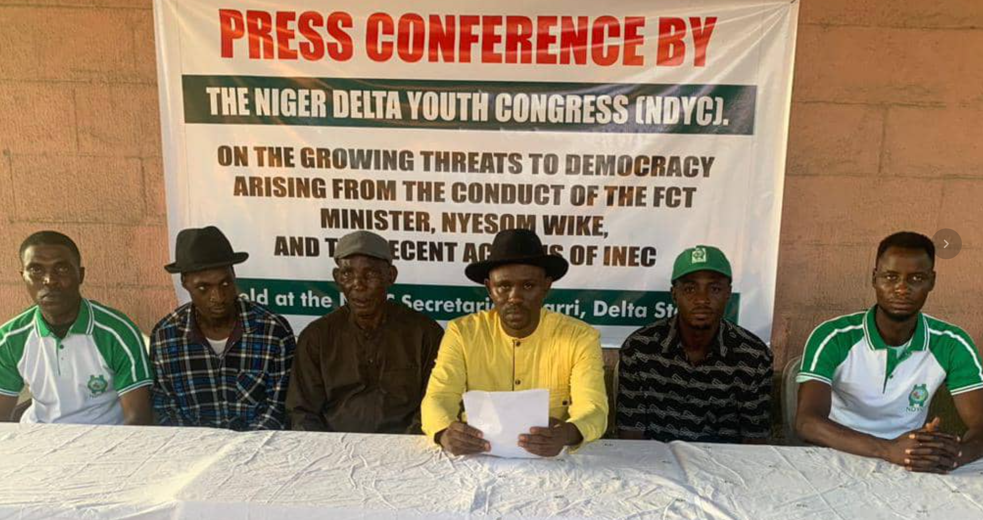The Niger Delta Youth Congress (NDYC) has issued a strongly worded statement warning that Nigeria’s democracy is facing “growing and escalating threats” from both the Minister of the Federal Capital Territory, Nyesom Wike, and the recent actions of the Independent National Electoral Commission (INEC).